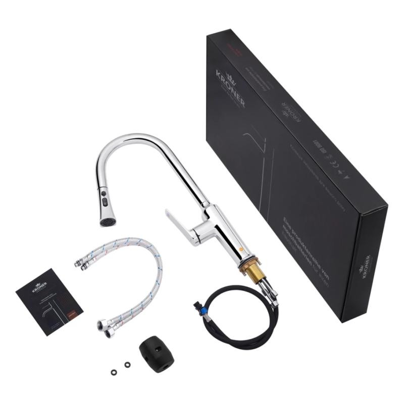 Особенностью Kroner KRP Makon - C030-T является наличие двух режимов подачи воды — обычная струя и душевой режим, позволяющий выбрать оптимальный вариант для мытья посуды или продуктов. приятным.