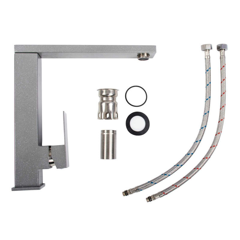 - Комплектация: шланги, крепеж для смесителя, прокладка, гайки