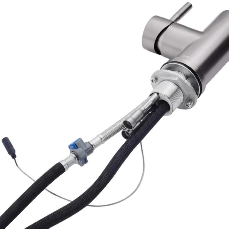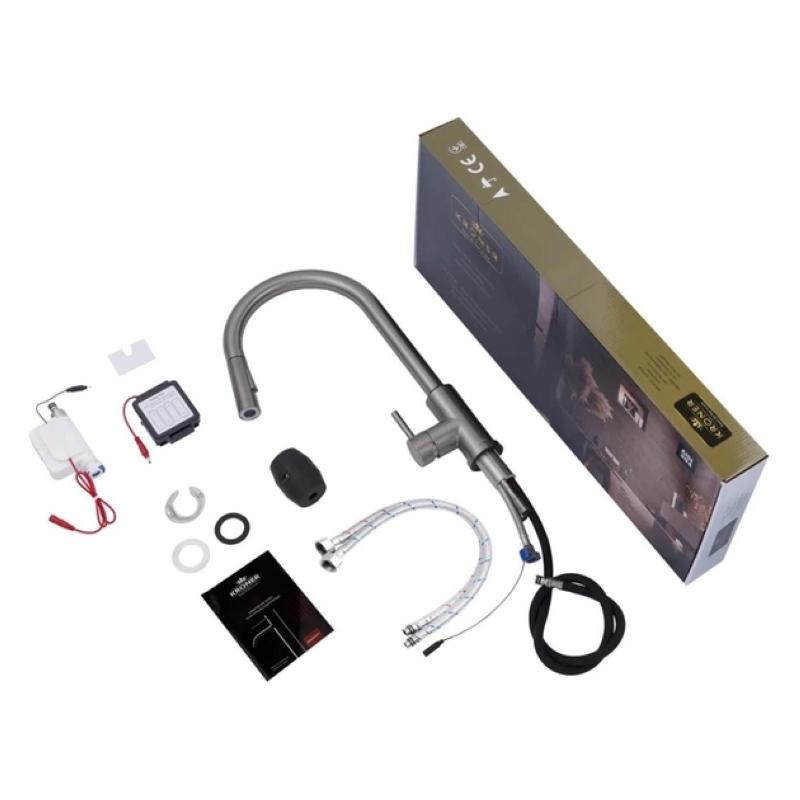 Смеситель для кухни с выдвижным изливом Kroner KRP Edelstahl Klassisch - PVD03916 сенсорный – инновационное решение, объединяющее стиль, функциональность и высокотехнологичность. Он оснащен уникальной технологией Touch, реагирующей на прикосновение, что делает использование смесителя еще более удобным и гигиеничным.