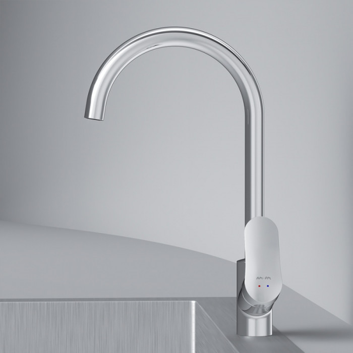 Кухонный смеситель АМ.РМ Like со встроенным каналом для питьевой воды успешно совмещает в себе два в одном. Благодаря прогрессивной технологии Fresh Boost при вращении ручки на 90 градусов вы можете наслаждаться чистой водой из фильтра. Если же Вам нужна обычная вода, смеситель управляется привычным способом. Также, конструкция, совмещающая в себе 2 в 1, экономит место и придаёт кухне опрятный вид без лишних элементов.