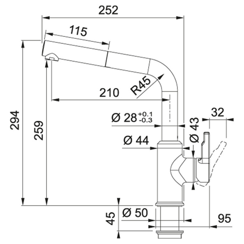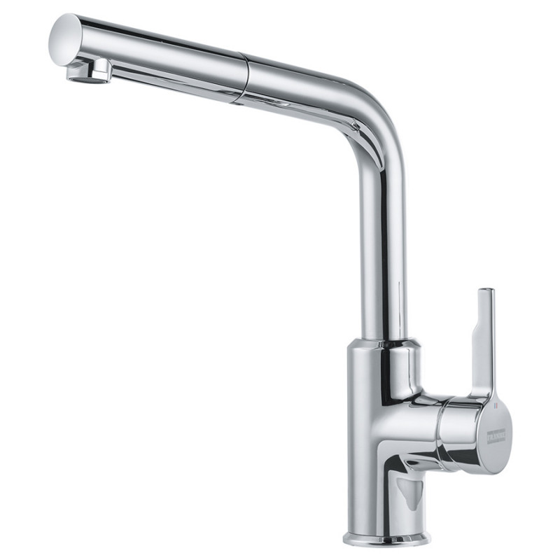 Врезной однорычажный кухонный смеситель Franke Urban (115.0595.083) хром с выдвижным шлангом (160 см), рычагом сбоку и многоуровневым аэратором.