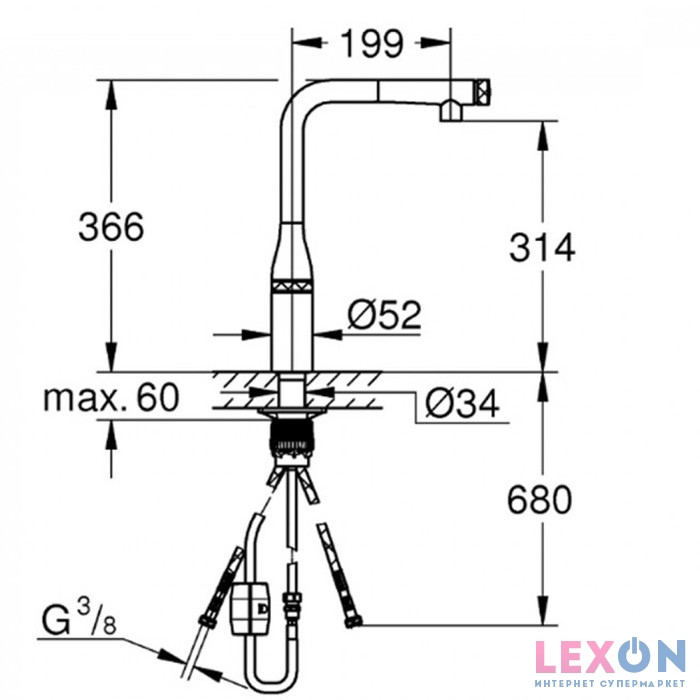 Кнопка SmartControl включает и выключает поток воды и регулирует ее напор