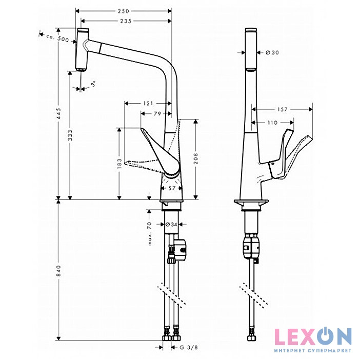 Выдвижной излив: | с выдвижным изливом |