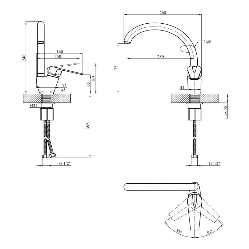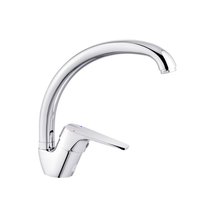 Смеситель для кухни Kroner KRM Odra-C036 CV021186 с поворотным изливом изготовлен из силумина и имеет хромированную глянцевую поверхность. Красиво выгнутая форма излива прекрасно смотрится в сочетании с элегантным рычагом и аккуратным корпусом. Смеситель устанавливается на 1 отверстие и подключается с помощью гибких шлангов, которые входят в комплект поставки. Такие смесители отлично смотрятся как с мойками из нержавеющей стали, так и с композитными мойками различных цветов.