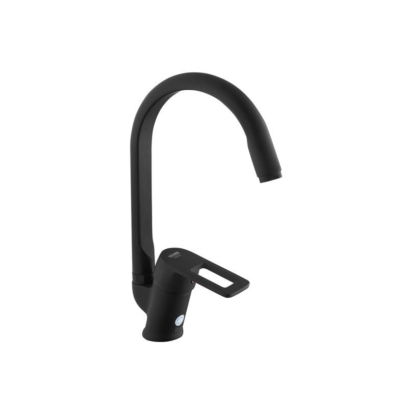 Смеситель для кухни Kroner KRM Zenda-SCH030 CV022960 изготовлен из силумина и имеет чёрную гладкую поверхность с хромированными элементами. Высокий излив с большим выносом очень удобен при мытье большой посуды и наборе воды в высокие кастрюли. Устанавливается смеситель на одно отверстие на кухонную мойку или столешницу и подключается гибкими шлангами.