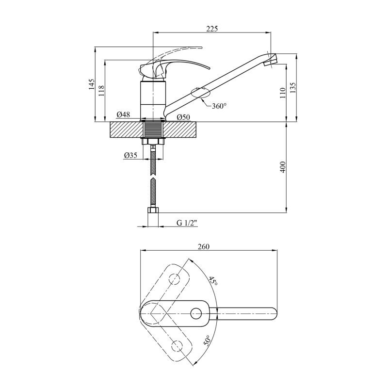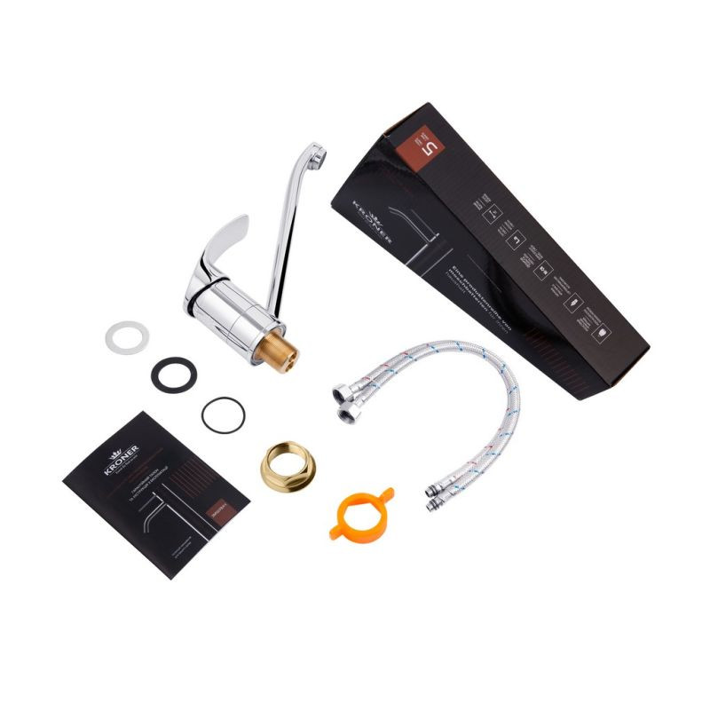 Смеситель для мойки Kroner KRP Konstante-C030 CV023590 выполнен из высококачественной латуни и имеет гладкую хромированную поверхность. Классическая форма и конструкция, а также поворотный излив смесителя имеют оптимальную высоту для комбинации со стандартными мойками. С ним удобно мыть посуду или обрабатывать продукты даже больших размеров. Смеситель легко устанавливается на мойку или столешницу на одно отверстие, а подключается с помощью гибких шлангов подвода воды, которые входят в комплект поставки.
