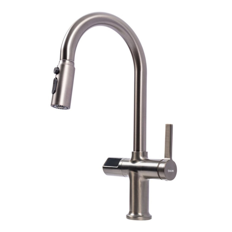 Змішувач VALESO NSC087 – це сучасне рішення для кухні, яке поєднує стильний дизайн, передові технології та максимальну зручність у використанні. Завдяки сенсорному вимикачу та датчику температури, керувати водою стало ще простіше, а висувний злив і два режими потоку забезпечують комфорт у будь-яких ситуаціях.