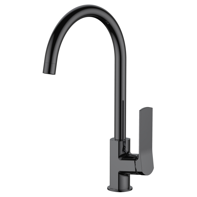 Смеситель для кухонной мойки Volle Solo 1510.111005 с оригинальным цветом покрытия - графит, изготовлен из высококачественной латуни. Высокий поворотный излив позволяет использовать смеситель для кухонных моек больших размеров или моек с двумя чашами. Однорычажная конструкция смесителя оснащена керамическим картриджем, который позволяет контролировать температуру и напор воды. Для формирования мощной и ровной струи предусмотрен аэратор, который смешивает воду с воздухом и препятствует разбрызгиванию. Сам смеситель устанавливается на одно отверстие и подключается с помощью гибких шлангов, которые входят в комплект поставки.