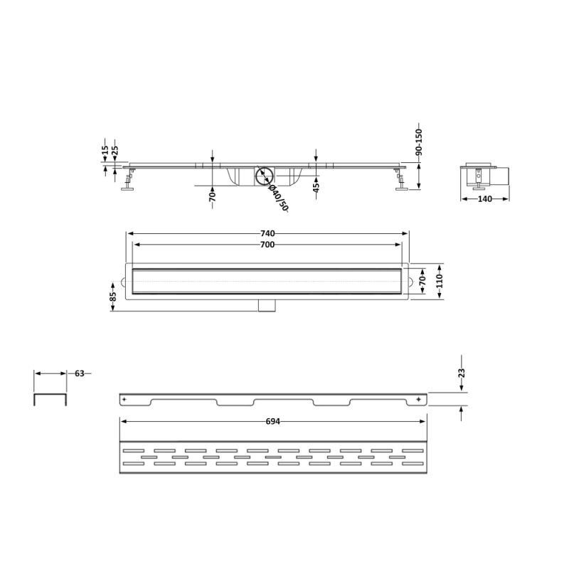 Комплект включает прочный корпус трапа и решетку. Сухой затвор обеспечивает надежную защиту от проникновения неприятных запахов из канализации без использования водяного затвора. Идеально подходит для душевых кабин и ванных комнат