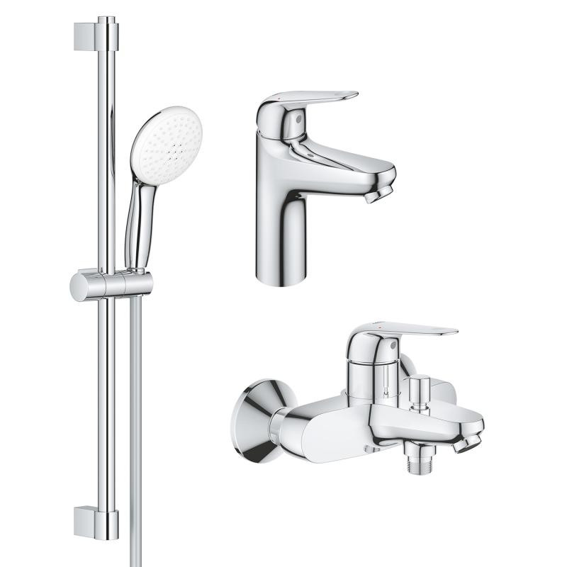 В коллекции представлены смесители для раковины в различных размерах и формах, смесители для ванны и душа, а также смесители скрытого монтажа со встраиваемыми частями. Таким образом вы легко укомплектуете вашу ванную комнату качественными немецкими смесителями по приятной цене вместе с Grohe EuroEco 2023.