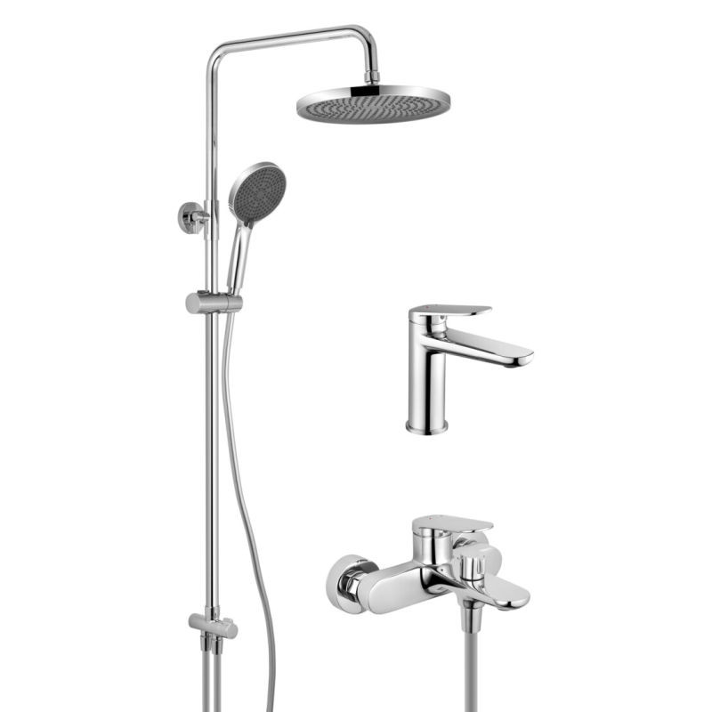 Комплект поставки Смеситель для раковины, смеситель для ванной, душевая система.