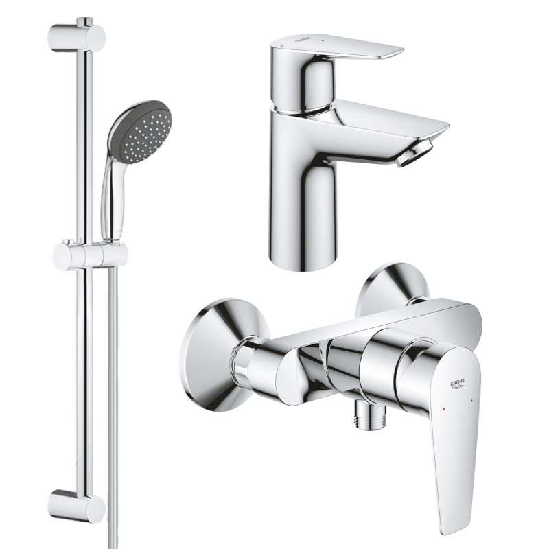 Набор для душа Grohe QuickFix Start Edge ColdStart UA202502SE состоит из смесителя для раковины с функцией холодного старта (подача холодной воды при центральном положении рычага), смесителя для душа и душевого набора со штангой. Все элементы комплекта имеют блестящую хромированную поверхность, которая не меняет своего внешнего вида долгие годы и сохраняет идеальный вид смесителей. Смесеитель оборудован керамическим картриджем, который гарантирует плавный ход рычага и точную настройку температуры и напора воды.