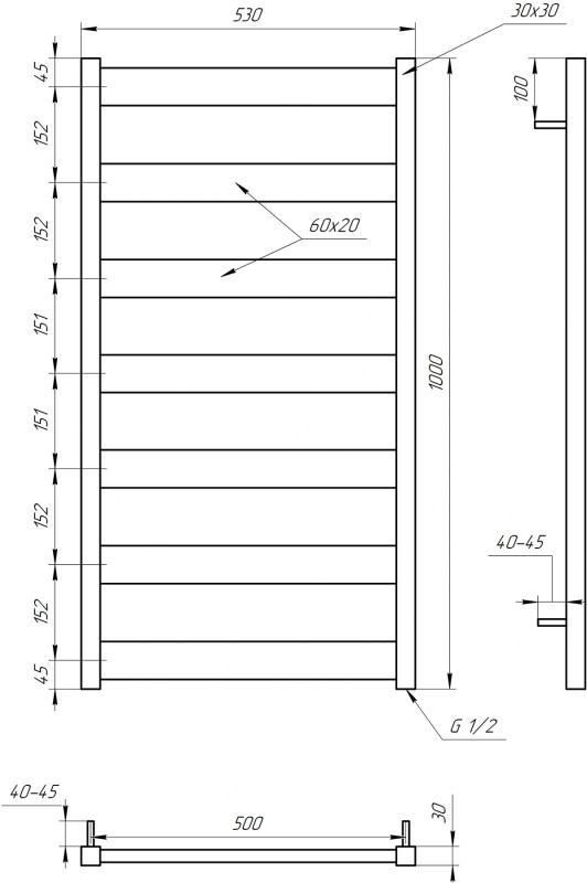 *Комплектация : комплект креплений - 1 шт, инструкция, коробка, тэн и краны комплектуются отдельно.