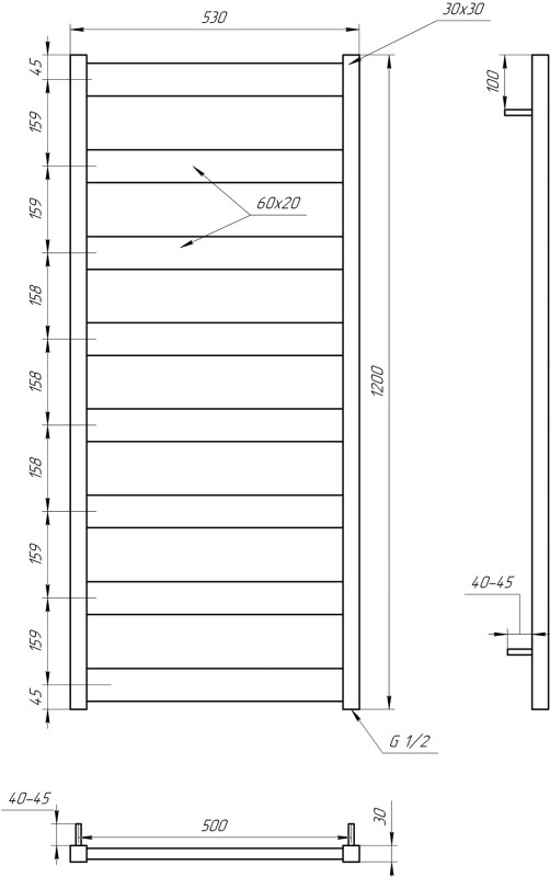*Комплектация : комплект креплений - 1 шт, инструкция, коробка, тэн и краны комплектуются отдельно.