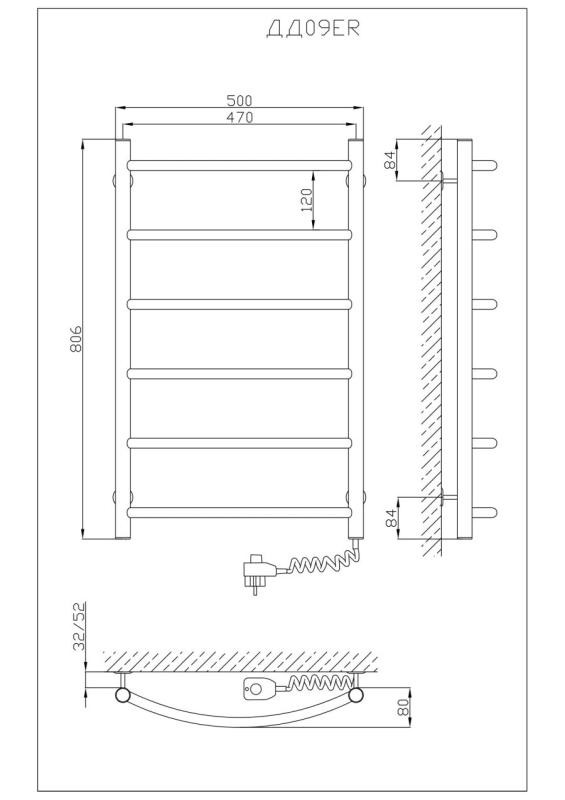 Особенности | Диаметр стойки - Ø30, толщина стойки - 1.5 мм, диаметр перемычки - Ø20, толщина перемычки - 1.5 мм. Максимальная рабочая температура 50-60 °C. Потребляемая мощность 90 Вт. |
