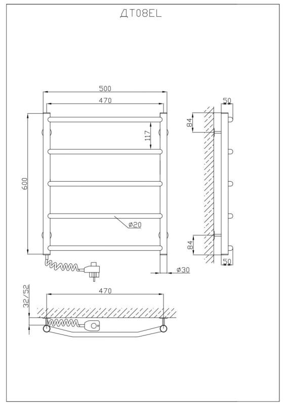Особенности | Диаметр стойки - Ø30, толщина стойки - 1.5 мм, диаметр перемычки - Ø20, толщина перемычки - 1.5 мм. Максимальная рабочая температура 50-60 °C. Потребляемая мощность 80 Вт. |