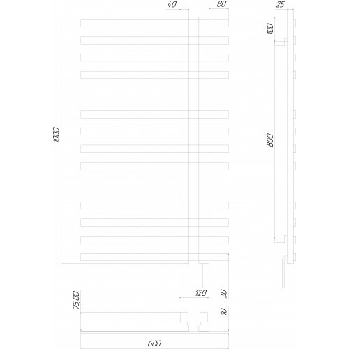 Особенности | Диаметр стойки - Ø40х25, толщина стойки - 1.2 мм, диаметр перемычки - Ø30х10, толщина перемычки - 1.2 мм. Максимальная рабочая температура 50-60 °C. Потребляемая мощность 315 Вт. |