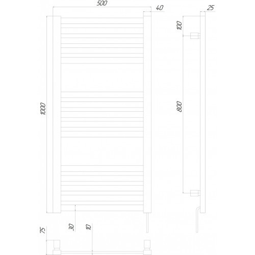 Особенности | Диаметр стойки - Ø40х25, толщина стойки - 1.2 мм, диаметр перемычки - Ø30х10, толщина перемычки - 1.2 мм. Максимальная рабочая температура 50-60 °C. Потребляемая мощность 370 Вт. |