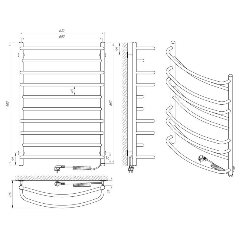При включении полотенцесушителя в электрическую сесть засветится и погаснет подсветка (синий цвет) что сигнализирует об исправности регулятора. Регулятор S3 имеет три режима работы min, mid и max. Режимы переключаются кратковременными касаниями до сенсора (<2 сек) - один за другим по кругу. Сенсор размещается на торце нижние стойки с регулятором.