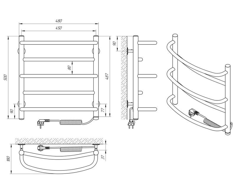 Описание Полотенцесушитель Laris Евромикс П5 450x500 Э Правый S3 (73207675)