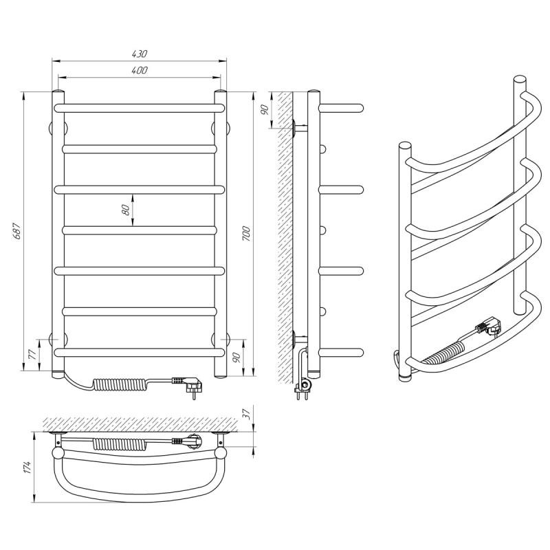 При включении полотенцесушителя в электрическую сесть засветится и погаснет подсветка (синий цвет) что сигнализирует об исправности регулятора. Регулятор S3 имеет три режима работы min, mid и max. Режимы переключаются кратковременными касаниями до сенсора (<2 сек) - один за другим по кругу. Сенсор размещается на торце нижние стойки с регулятором.