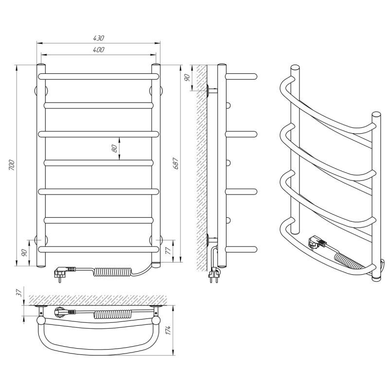 При включении полотенцесушителя в электрическую сесть засветится и погаснет подсветка (синий цвет) что сигнализирует об исправности регулятора. Регулятор S3 имеет три режима работы min, mid и max. Режимы переключаются кратковременными касаниями до сенсора (<2 сек) - один за другим по кругу. Сенсор размещается на торце нижние стойки с регулятором.