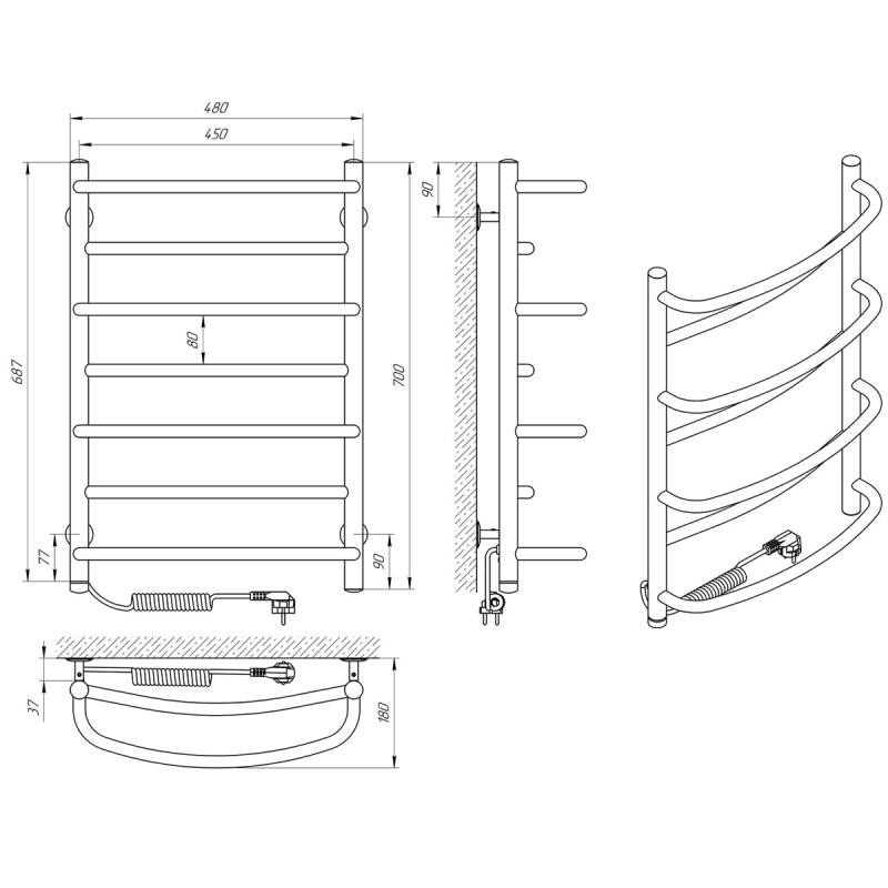 Описание Полотенцесушитель Laris Евромикс П7 450x700 Э Левый S3 (73207680)