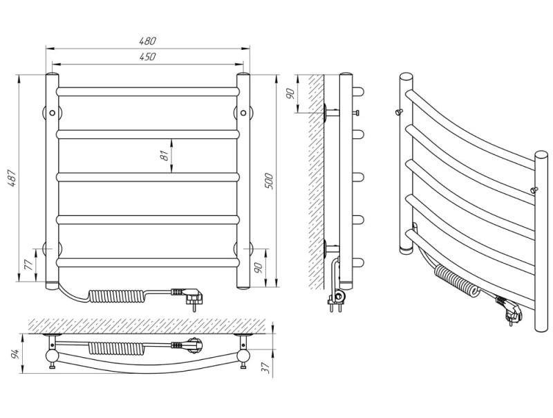 Описание Полотенцесушитель Laris Классик П5 450x500 Э Левый S3 (73207721)