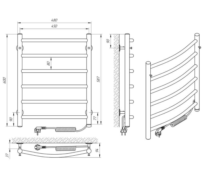 Описание Полотенцесушитель Laris Классик П6 450x600 Э Правый S3 (73207724)