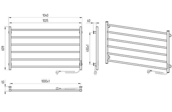 Полотенцесушитель - 1 шт, крепление (шуруп оцинкованный с дюбелем, пластиковое крепление, резьбовая втулка, штифт) - 4 шт, ключ шестигранный - 1 шт, упаковка (короб картонный, чехол полиэтиленовый, чехол полиэтиленовый для крепления, коробочка для креплений) - 1 шт, паспорт - 1 шт.