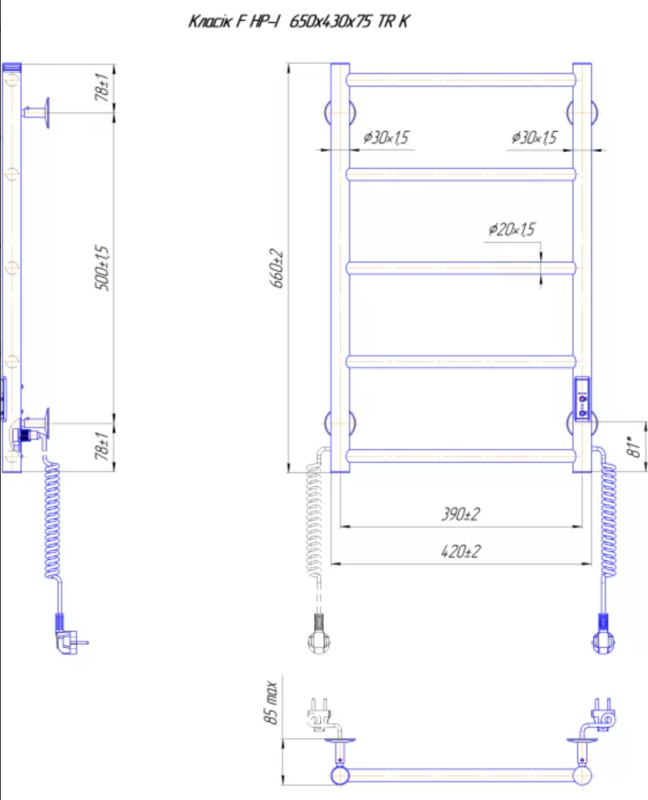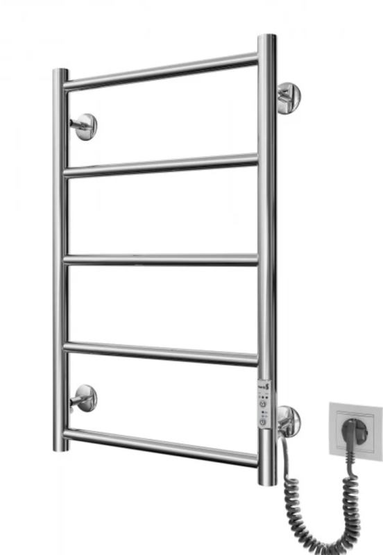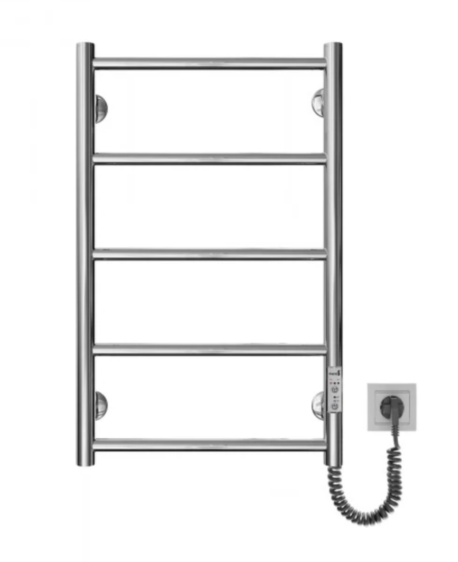 Оснащена таймер-регулятором и коннектором для подключения к розетке с любой стороны. Совместима с комплектом скрытого подключения. Имеет 5 перекладин и стойки. Изготовлена из полированной нержавеющей стали без хромирования. Температурные режимы таймер-регулятора: 40°С, 45°С, 50°С. Варианты времени работы: 3, 6 часов и постоянный нагрев. Мощность [3 Вт].