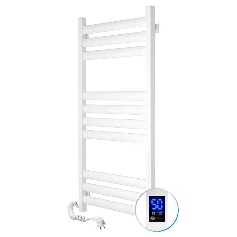 Полотенцесушитель Ellipse 500х1000 Sensor (цвет — белый бархат; расположение шнура с вилкой — слева) от украинского производителя NAVIN изготовлен из углеродной стали, которая отличается высоким качеством и прочностью. Модель имеет надежное порошковое покрытие. Толщина стенок боковых коллекторов (стоек) и перемычек сушилки составляет 1,5 мм.