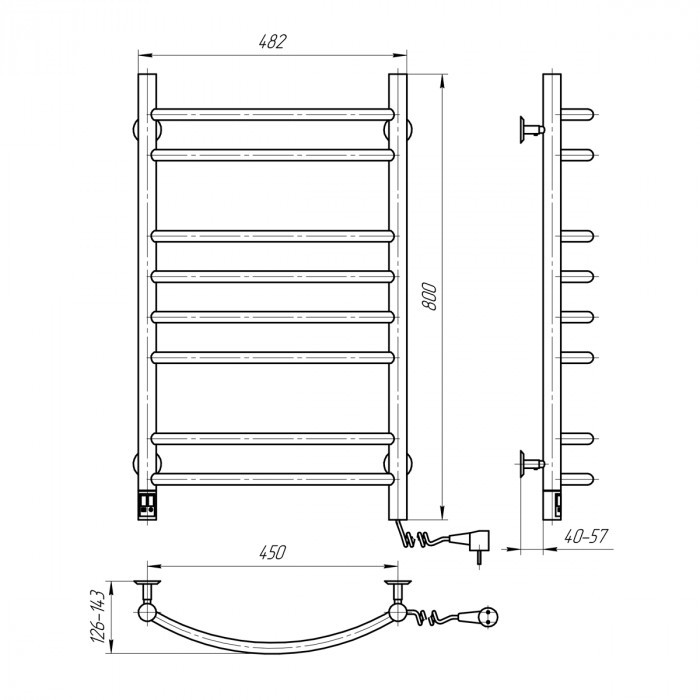 Электрический полотенцесушитель Камелия 480х800 сенсор с таймером, цвет — черный муар, от украинского производителя NAVIN, изготовлен из углеродистой стали, которая отличается высоким качеством и прочностью. Модель имеет порошковое покрытие. Толщина стенки перемычек полотенцесушителя составляет 1,5 мм, а стоек — 2 мм.