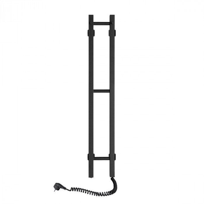 Электрический полотенцесушитель Силуэт Квадро, цвет — черный муар, от украинского производителя NAVIN, изготовлен из углеродистой стали, которая отличается высоким качеством и прочностью. Модель имеет порошковое покрытие. Толщина стенки стоек и перемычек полотенцесушителя составляет 1,5 мм.