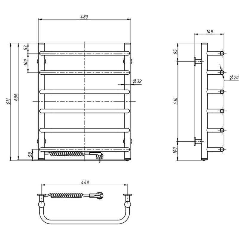Электрический полотенцесушитель Симфония 480х600 от украинского производителя NAVIN изготовлен из углеродистой стали, которая отличается высоким качеством и прочностью. Модель имеет порошковое покрытие. Толщина стенки перемычек полотенцесушителя составляет 1,5 мм, а стоек 2 мм.