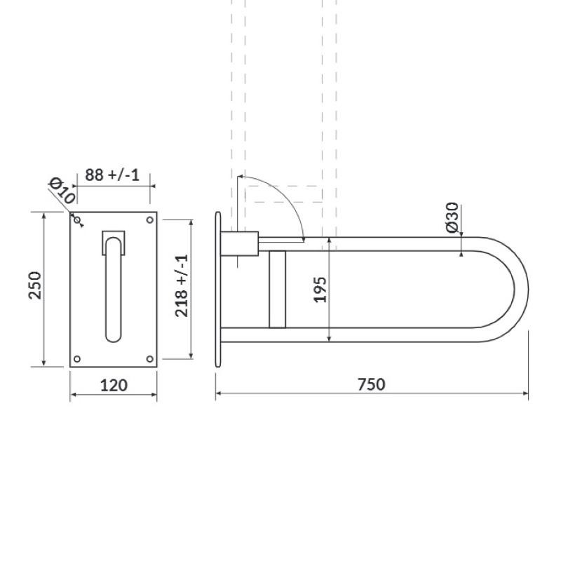 Коллекция ETIUDA была специально разработана для пожилых людей и с ограниченными возможностями. Она состоит из компактного унитаза, умывальника и аксессуаров, которые облегчают безопасное использование туалета и ванной комнаты без посторонней помощи. Серия товаров предназначена для оборудования комнат гигиены и санитарных помещений в жилых помещениях и местах общего пользования, в том числе в учебных заведениях и больницах. Откидной настенный поручень имеет удобную скругленную форму, что является неоспоримым преимуществом для безопасного использования. Его можно закрепить как у умывальника, так и у унитаза. Прочная хромированная сталь позволяет пользоваться аксессуаром на протяжении многих лет.