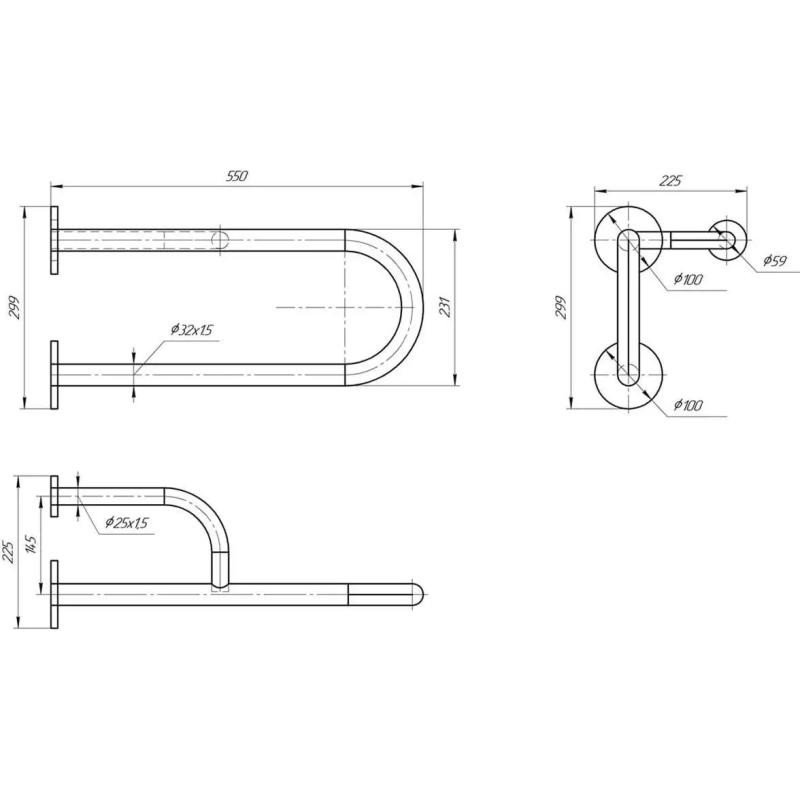 Схема - поручень Laris настенный с упором (правый)