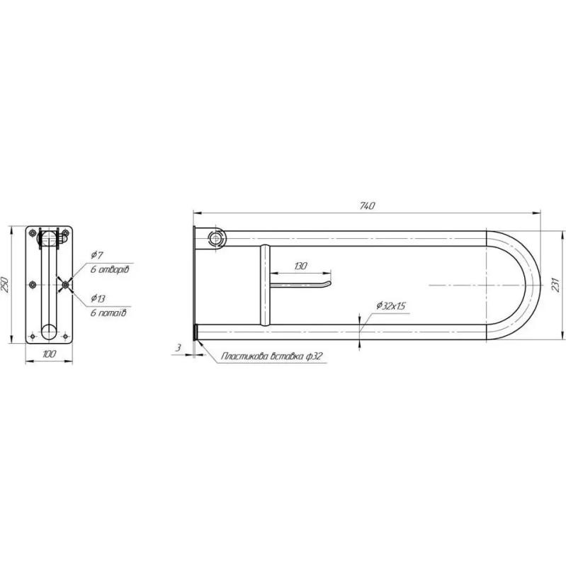Поручень настенный позволяет улучшить качество жизни людей с ограниченными возможностями, пенсионеров, стариков. Дополнительное удобство представляет возможность перемещать поручень из горизонтального положения в вертикальное. Присутствует перемычка-держатель для бумаги.