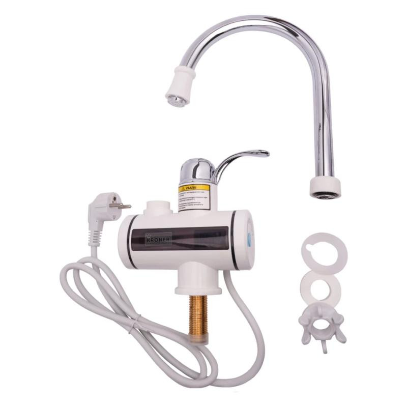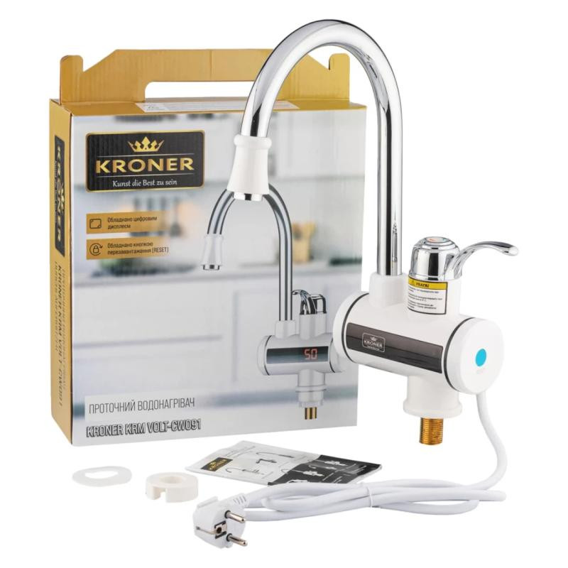 Коллекция кранов с электроподогревом Volt от немецкого производителя Kroner создана специально для помещений, в которых нужна горячая вода, но нет возможности её подвести от центральных магистралей. Фактически модели данной серии являются проточными водонагревателями, которые интегрированы со смесителем. Данные краны помогут даже сэкономить энергию в тех случаях, где тёплая вода нужна не регулярно, так как бойлерные системы требуют постоянного подогрева воды, а данный кран потребляет электричество только когда его включают (например ополоснуть руки или помыть посуду). Также такие краны часто используют на дачах и загородных домиках, так как не нужно сливать воду на зиму.