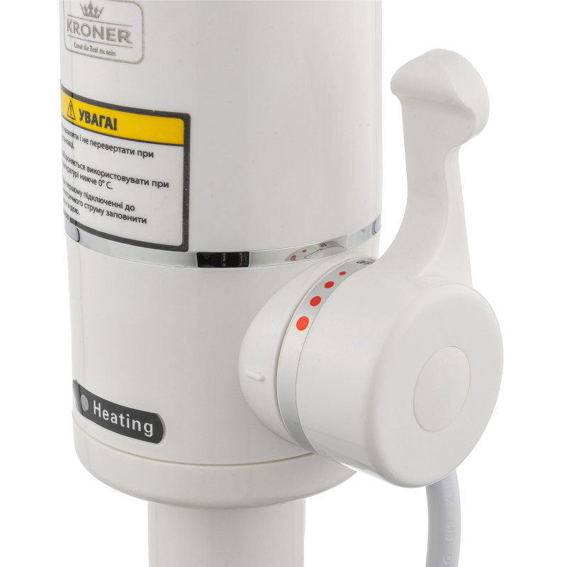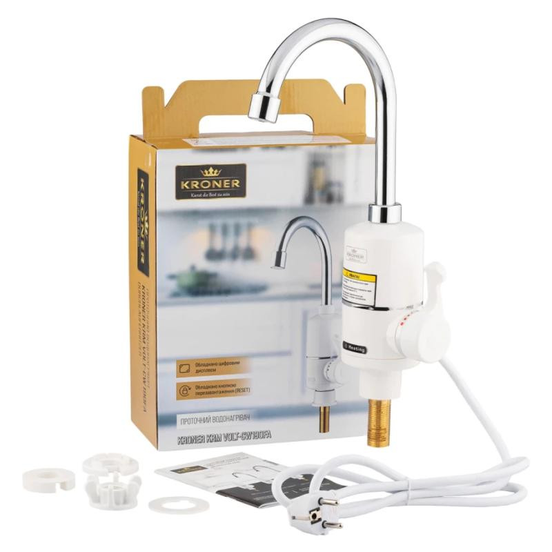 Коллекция кранов с электроподогревом Volt от немецкого производителя Kroner создана специально для помещений, в которых нужна горячая вода, но нет возможности её подвести от центральных магистралей. Фактически модели данной серии являются проточными водонагревателями, которые интегрированы со смесителем. Данные краны помогут даже сэкономить энергию в тех случаях, где тёплая вода нужна не регулярно, так как бойлерные системы требуют постоянного подогрева воды, а данный кран потребляет электричество только когда его включают (например ополоснуть руки или помыть посуду). Также такие краны часто используют на дачах и загородных домиках, так как не нужно сливать воду на зиму.