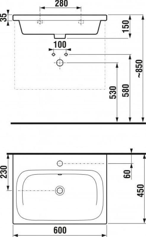 • Цвет: Белый • Тип установки: Подвесной / на тумбу • Форма раковины: Прямоугольная • Отверстие для смесителя: Да • Наличие отверстия для перелива: Да • Материал: Керамика • Глубина: 450 мм • Высота: 150 мм • Ширина: 600 мм • Страна производитель: Чехия