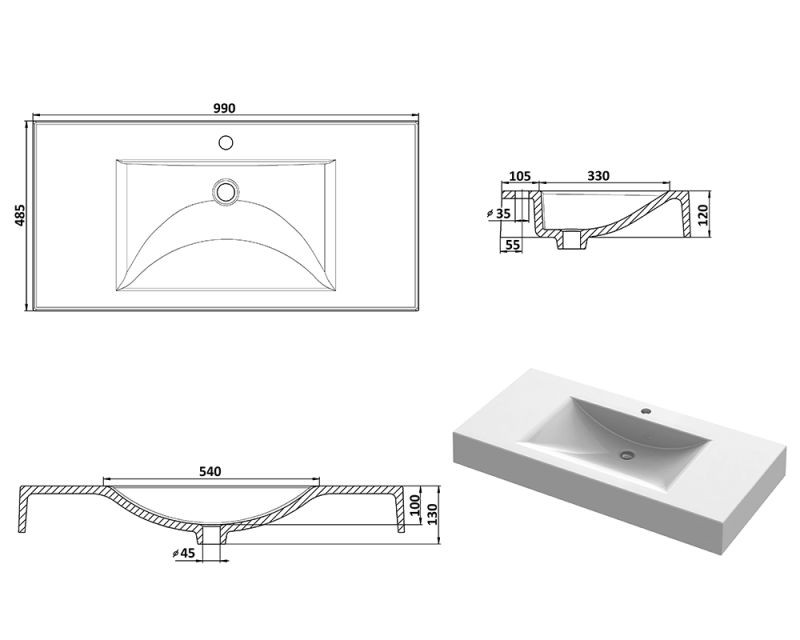 Форма умывальника: | прямоугольная |