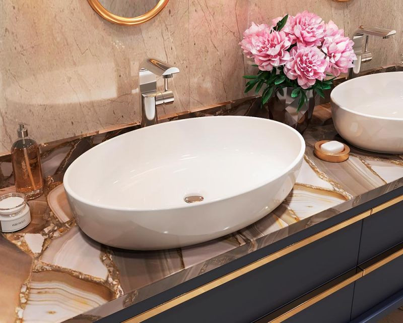 Большой, удобный, стильный и непревзойдённый умывальник «Парадиз» порадует своих владельцев и будет приносить только положительные эмоции в пользовании. Своей формой и грацией он подчеркнёт и придаст Вашей ванной комнате идеальный и неповторимый дизайн, изящные изгибы создают шикарный дизайн для шикарной обстановки современной ванной комнаты. Устанавливается умывальник на столешницу самостоятельно или же в паре. Это придаст вашей ванной комнате ещё больше роскоши и красоты, а главное- удобство использования двух умывальников одновременно.