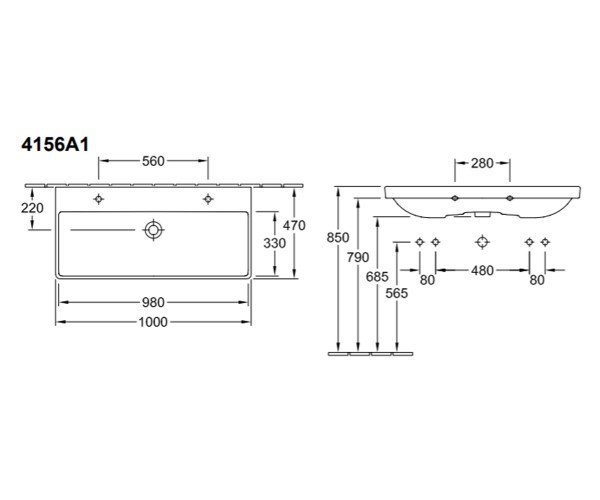 Подвесная раковина Villeroy&Boch Avento 4156A101 имеет прямоугольную форму с размерами 1000 x 470 мм и входит в коллекцию известного бренда Villeroy&Boch Avento. Pаковина для установки на тумбу.