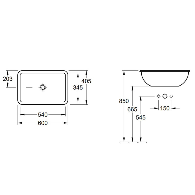 Раковина встраиваемая сверху 600x405 мм, без отверстий для смесителя, с переливом, цвет альпийский белый