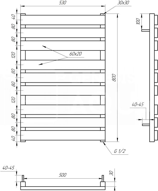 Описание Полотенцесушитель Genesis Aqua Alpina 80x53 черный