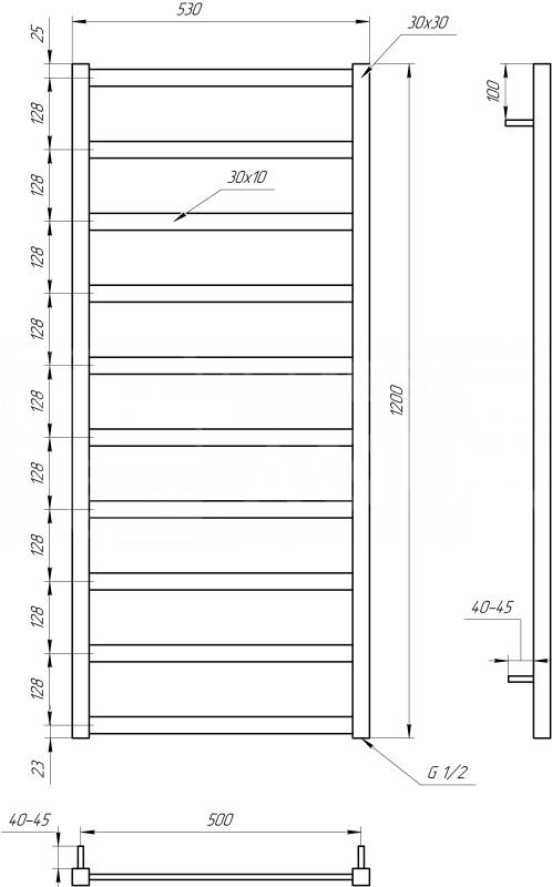 Полотенцесушитель Genesis Aqua Lono 120x53 черный характеристики: