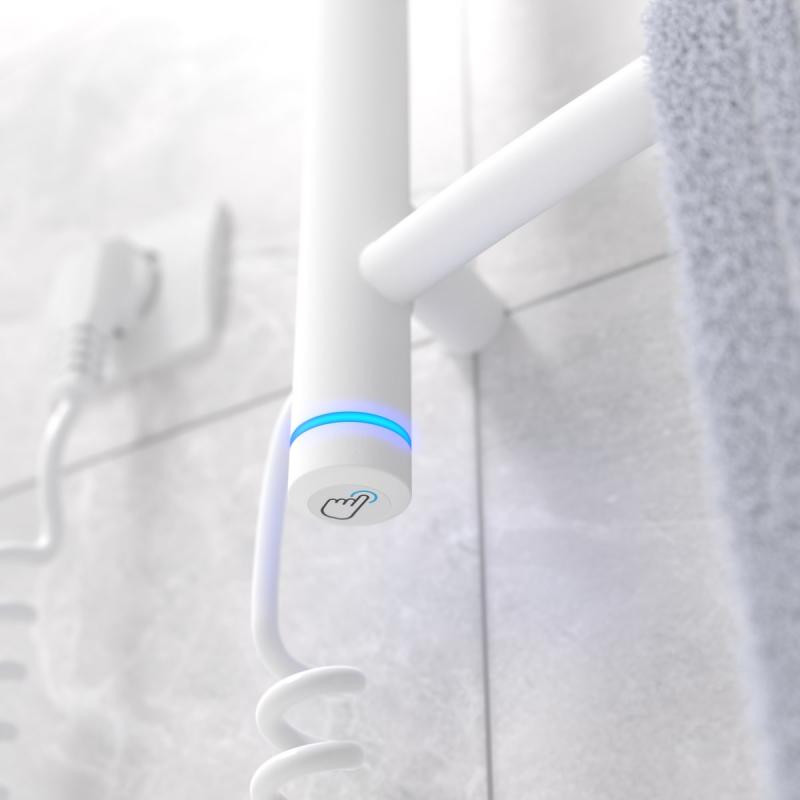 При включении полотенцесушителя в электрическую сеть засветится и погаснет подсветка (синий цвет), что сигнализирует об исправности регулятора. Регулятор S3 имеет три режима работы: "min", "mid" и "max". Режимы переключаются кратковременным прикосновением к сенсору (<2 сек) – один за другим по кругу. Сенсор размещается на торце нижней стойки с регулятором.