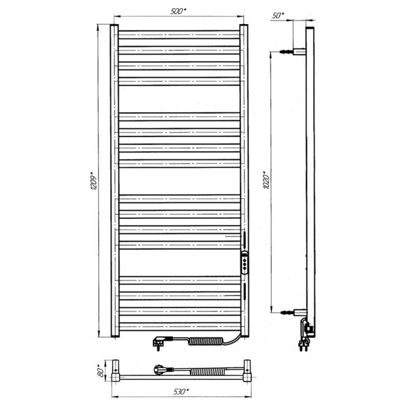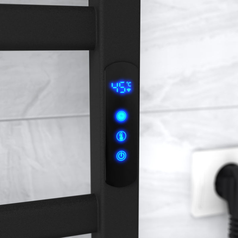 Особенности: управляет нагревом электрополотенцесушителя микропроцессорный термоконтроллер (сенсорное управление или через Wi-Fi). Для начала работы необходимо включить полотенцесушитель и задать температуру работы прибора в градусах от 30 до 55°С (с шагом 5°С). Термодатчик контролирует температуру поверхности полотенцесушителя, что исключает возможность его перегрева. Среди преимуществ регулятора – возможность управлять терморегулятором с помощью Wi-Fi, наличие таймера отключения (1-12h) и память режима работы.