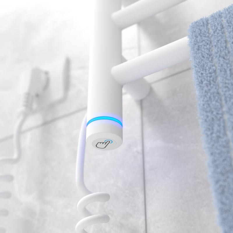 При включении полотенцесушителя в электрическую сеть засветится и погаснет подсветка (синий цвет), что сигнализирует об исправности регулятора. Регулятор S3 имеет три режима работы: "min", "mid" и "max". Режимы переключаются кратковременным прикосновением к сенсору (<2 сек) – один за другим по кругу. Сенсор размещается на торце нижней стойки с регулятором.